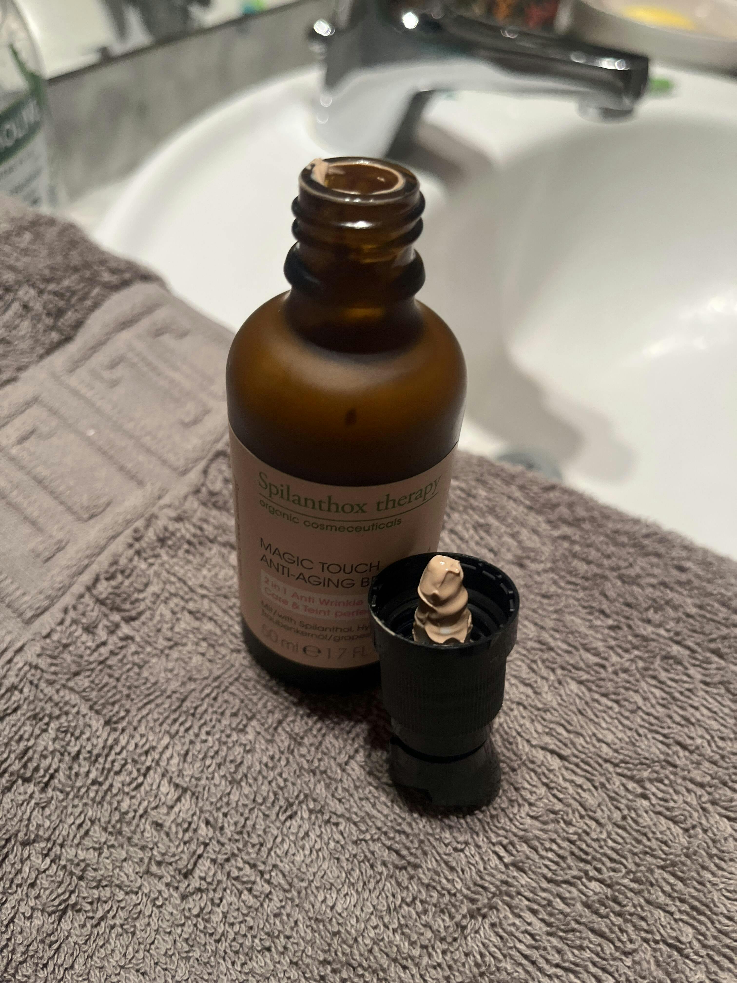 Leider gab es bei der ersten Flasche ein Problem mit dem Pumpmechanismus: Der Druckknopf ist kaputtgegangen. Mit großer Mühe konnte ich den Inhalt noch eine Zeit lang verwenden, indem ich die Creme mit Wattestäbchen herausgeholt habe. Irgendwann war das jedoch nicht mehr möglich, da die Wattestäbchen zu kurz waren. Dadurch konnte ich leider einen Teil des Produkts nicht mehr nutzen.